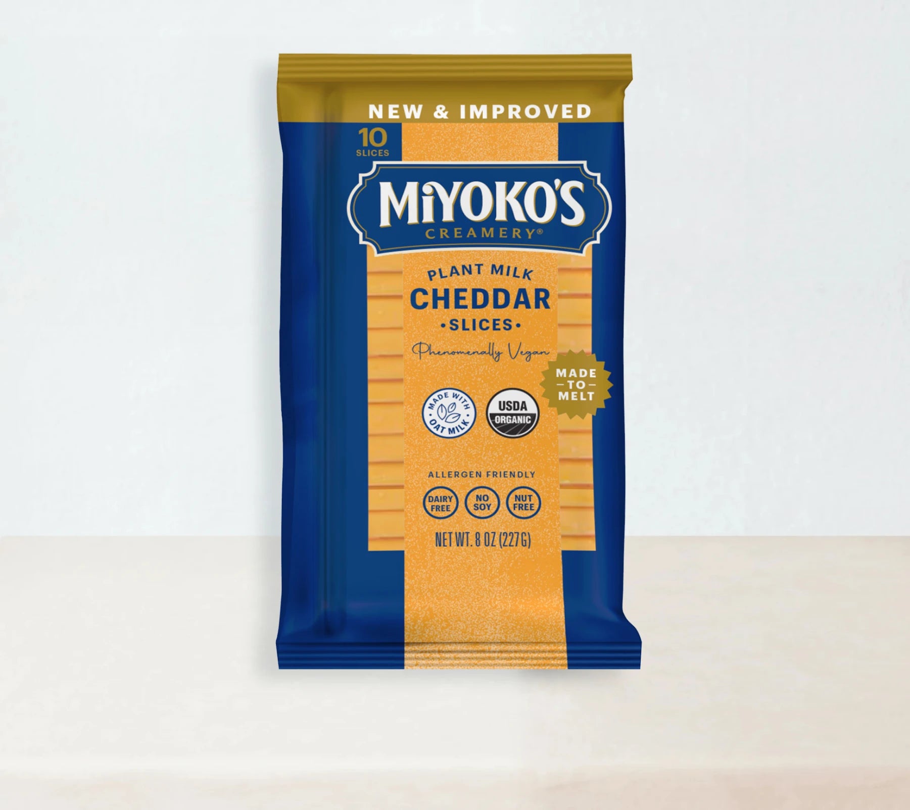 Crafted from organic oat milk and simple ingredients, these plant-based cheddar slices add a burst of flavor and creamy, dairy-free cheesy goodness to every bite. Elevate any sandwich with a slice and make the best plant-based cheeseburger yet.