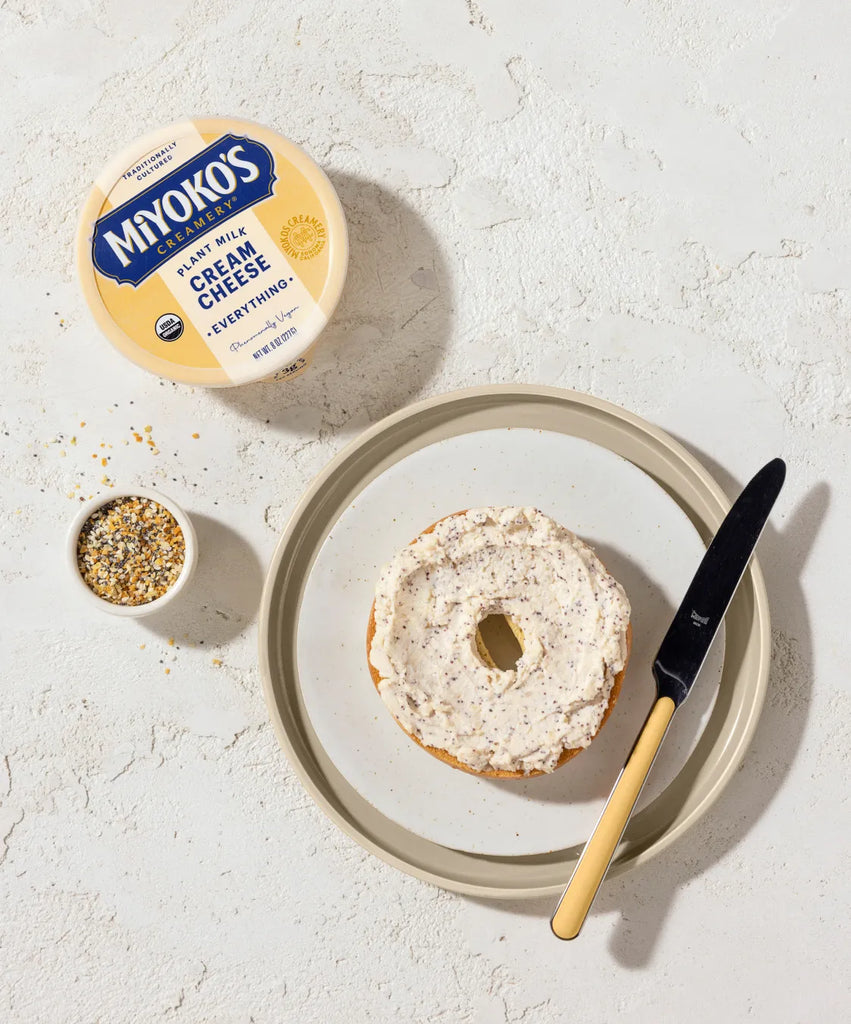 A classic combo that never fails: a bagel and schmear. Spread on a delicious layer of Miyoko's to make your morning!